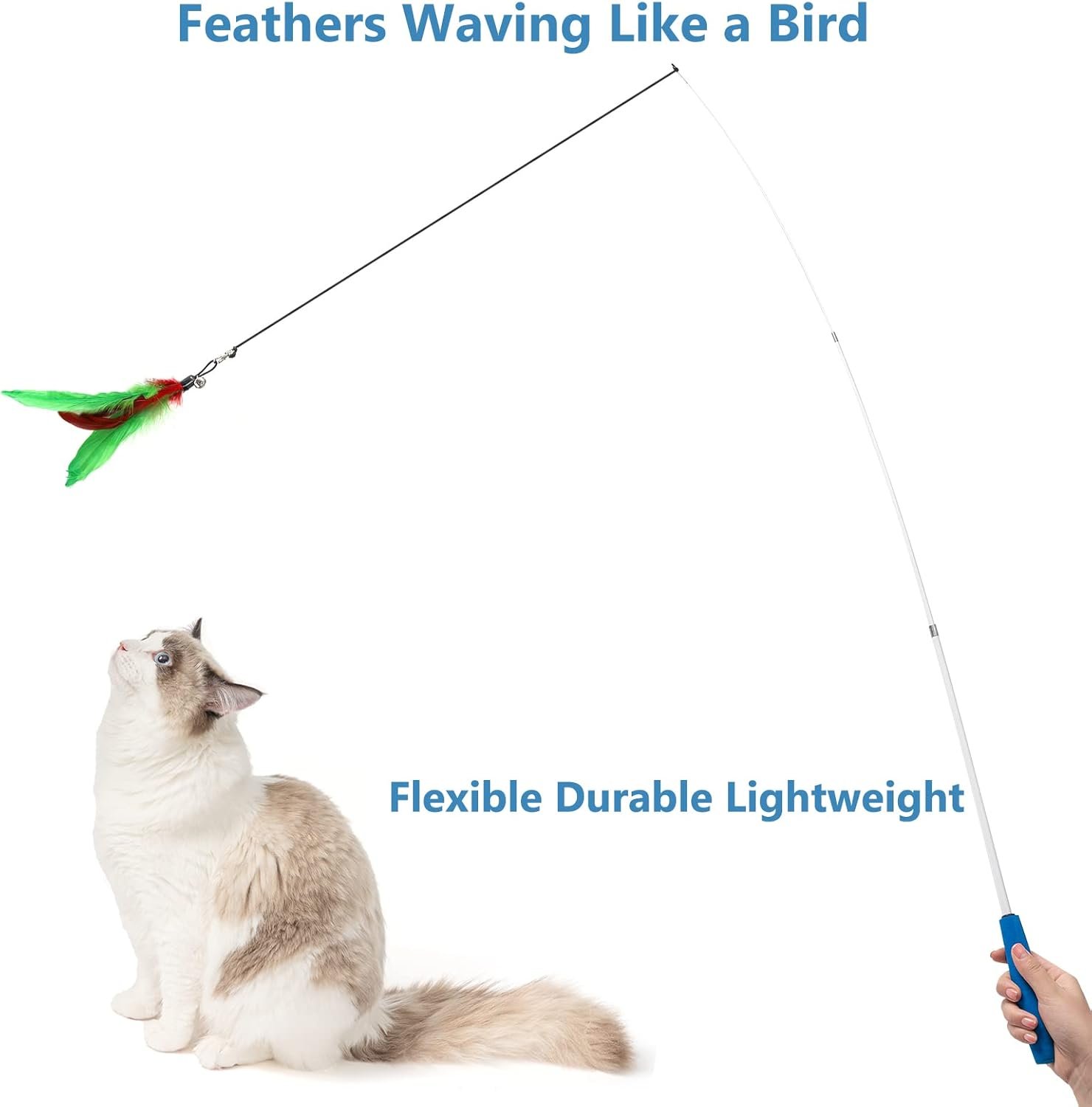 【Funny Interactive Cat Toy】Using this cat feather toys will enhance the relationship between cats and you. As the feathers cat teaser waving like a bird, our cat toy wand stimulate your cat’s hunting instincts, the chasing game will make cats so happy and excited, driving your cats fliping, jumping, pouncing, doing a lot of exercise while playing, they’ll be crazy funny to play this interactive cat toys, great way to keep your cat fit and happy!
